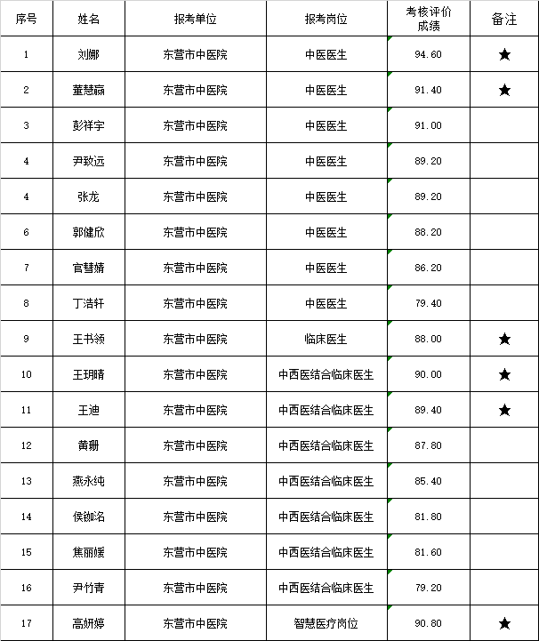 根据《2023年东营市市属事业单位“千名英才”选聘公告》总体工作安排及中医医生岗位初试结果,现将资格审查和考核评价(复试)有关事宜通知如下:一、现场资格审查人员范围、时间及地点1.进入考核评价现场资格审查范围人选(名单附后)。2.资格审查时间:2023年6月8日8:30-17:303.资格审查地点:东营市东营区北二路107号东营