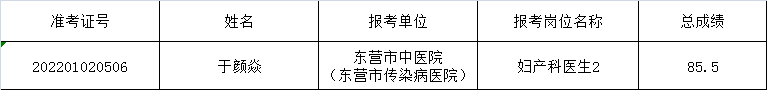 2022年东营市中医院(东营市传染病医院、东营市精神卫生中心)公开招聘工作面试已于8月13日结束,根据《2022年东营市中医院(东营市传染病医院、东营市精神卫生中心)公开招聘工作人员简章》及有关规定,现将2022年东营市中医院(东营市传染病医院、东营市精神卫生中心)公开招聘工作人员考试总成绩予以公告。为方便工作,提