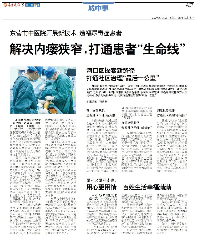 【齐鲁晚报·黄三角早报】解决内瘘狭窄,打通患者“生命线”