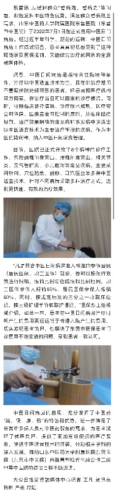 【大众报业·鲁中晨报】中医日间病房:无需夜间住院,医保报销